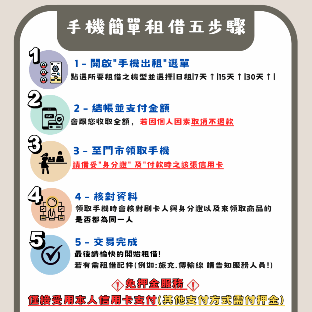 **快速交易,無需押金**:我們的平板租借和手機出租服務均免押金,交易簡單快速,讓您使用無負擔。